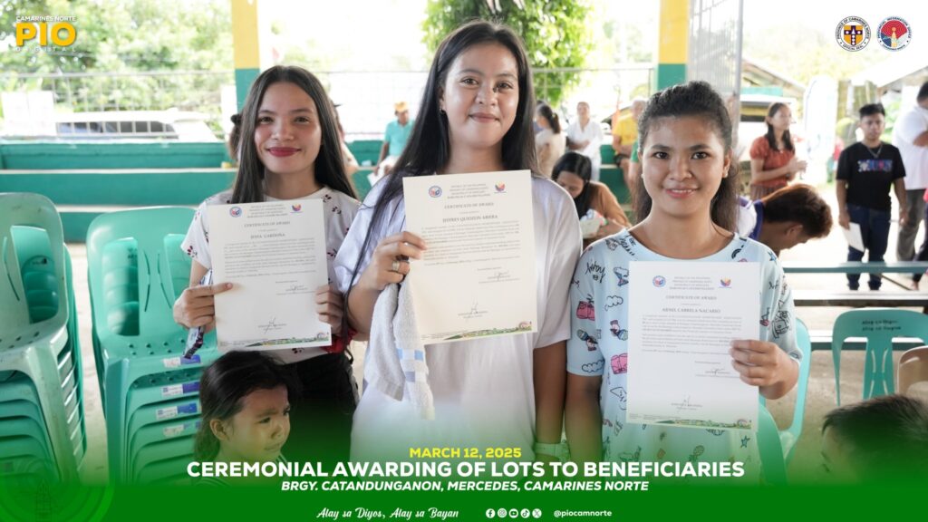 Pormal nang ipinagkaloob ang lupa o lote para sa mga residente ng Barangay Catandunganon sa bayan ng Mercedes, Camarines Norte nitong ika-12 ng Marso 2025.