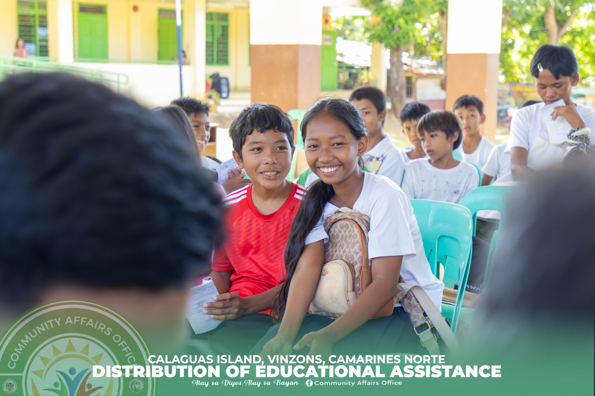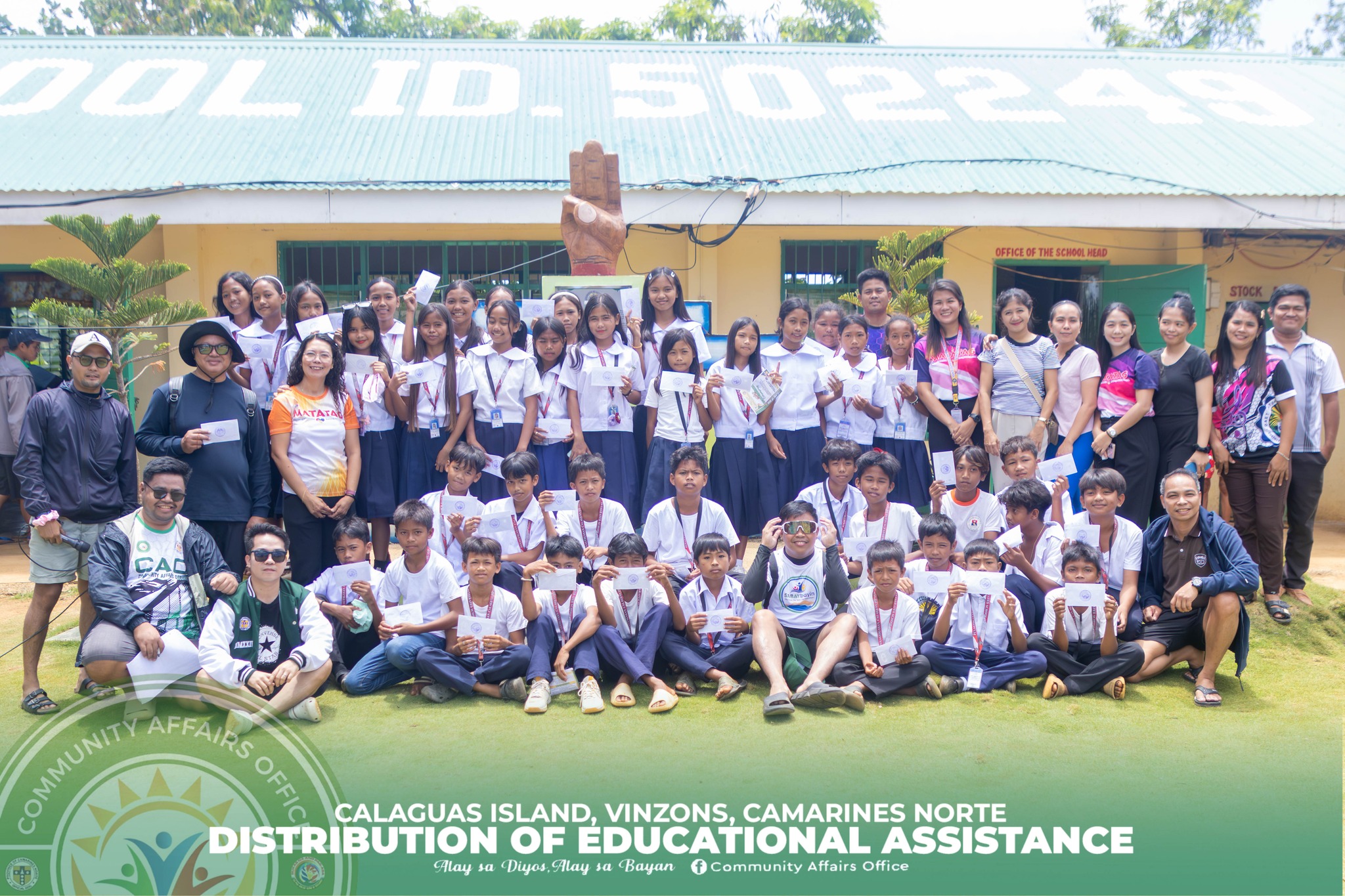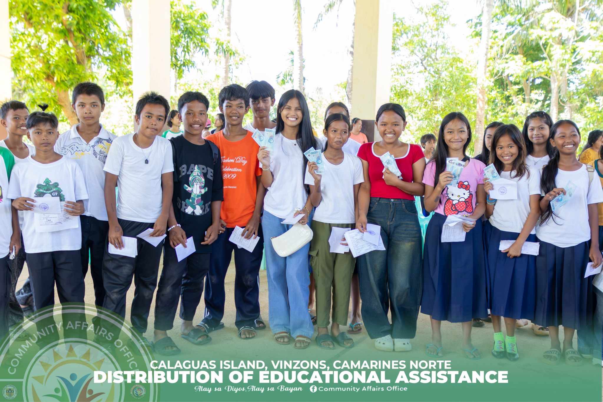 Pangunahing adhikain ng kasalukuyang administrasyon na mailapit ang mga serbisyong pang-edukasyon sa bawat mamamayan ng lalawigan ng Camarines Norte, lalo na sa mga komunidad na nasa malalayong lugar. Kaugnay nito, nagtungo ang tanggapan ng Community Affairs Office sa Calaguas Island, Municipality of Vinzons, Camarines Norte upang ipamahagi ang tulong pinansiyal para sa mga mag-aaral na Grade 7.